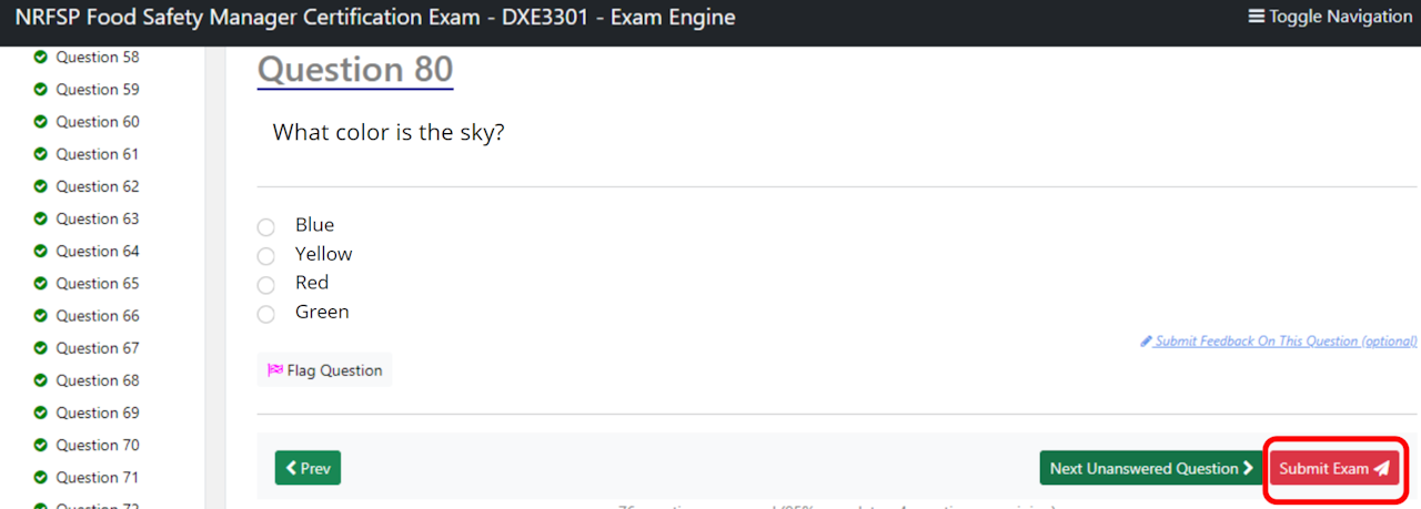 After answering/reviewing all questions, select Submit Exam.