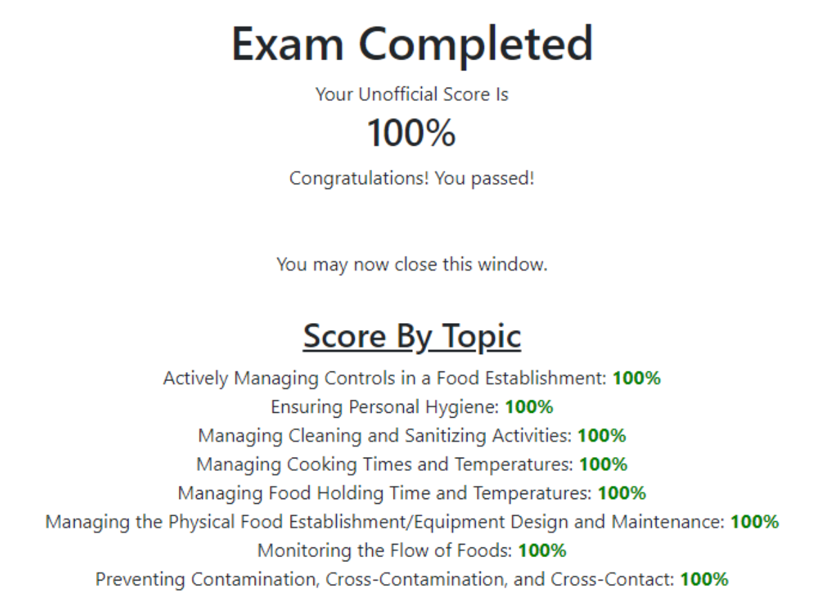 The exam data will be sent to the National Registry the next business day for official processing and scoring.