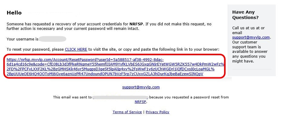 Go to https://nrfsp.myvlp.com/ and select Forgot Password.